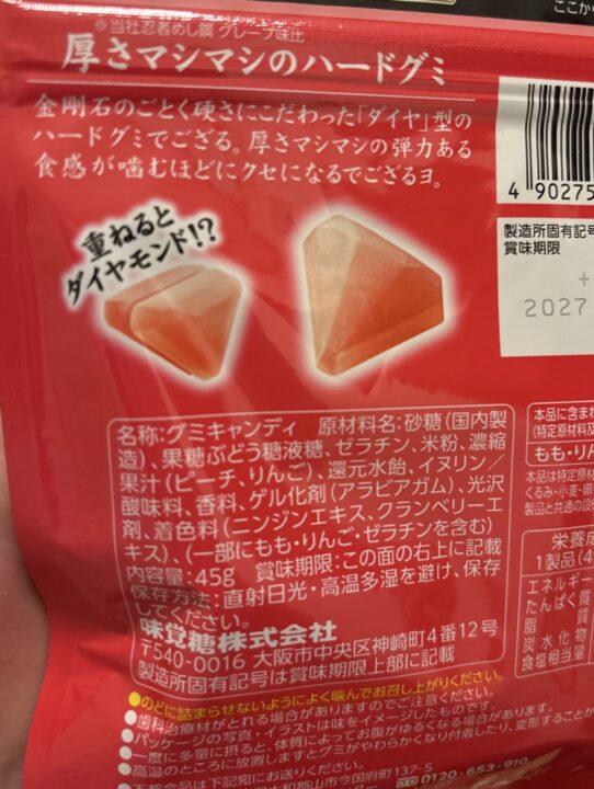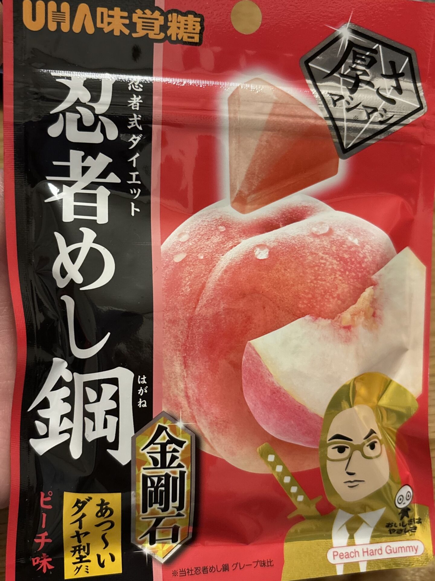 忍者めし 鋼 金剛石 あつ~いダイヤ型グミ ピーチ味 ハードグミ 味覚糖